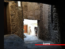 Sant Esteve de Sorre és una església romànica d'una nau amb absis. L'actual porta es troba als peus de la nau, sota un petit cobert. El campanar torna a ser la construcció que més sorprèn. I seguim cap a Escàs. Ho fem per un corriol delimitat per murs de pedra seca i ben senyalitzat. Ens toca també fer una mica de pujada ja que el poblet es troba enfilat en un turó i hem de travessar a l'altre vessant de la muntanya i travessar el riu Rialbo, afluent del Pamano, per un pont de fusta. I tot seguit el riu Caregue, un altre dels afluents. I ara toca pujar una mica per acostar-nos a Escàs. Ho fem gaudint del paisatge espectacular de tota la vall. I arribem a Escàs, ja en terme de Rialp.